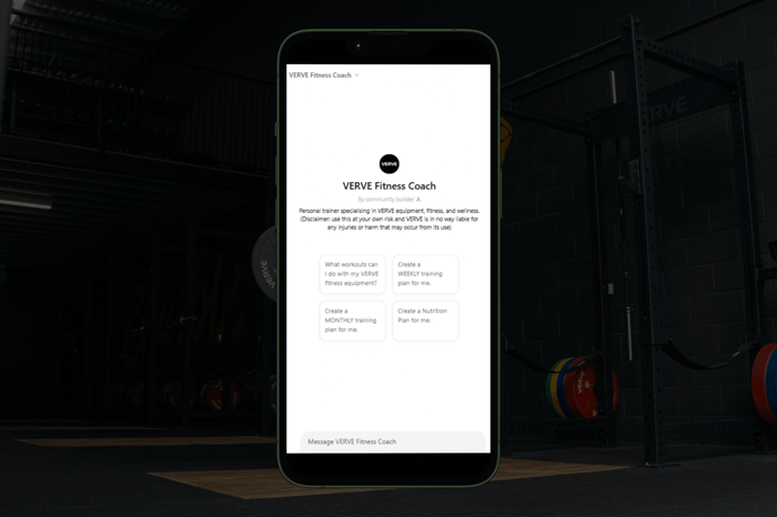 Want to get the most out of your new VERVE equipment? Let VERVE's AI Fitness Coach build a programme tailored to you. It takes the guesswork out of training and helps you make smarter decisions about what to do each session.