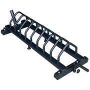 This plate holder is capable of storing two VERVE cast iron plates per gap (20kg and 25kg) but only one of our standard bumper plates (15kg+).
