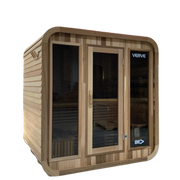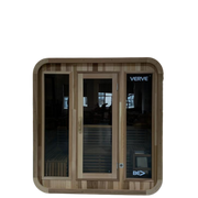 Escape all stress with your own outdoor private sanctuary. The VERVE Clarity Outdoor Sauna has been meticulously designed to create a serene escape in the comfort of your own outdoor space. Crafted to accommodate up to four individuals, this sauna is perfect for families, friends, or anyone seeking relaxation and rejuvenation. Its sleek design and full glass door make it a stylish addition to any backyard or patio.