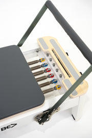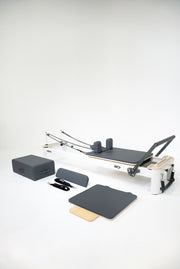 The Flow Reformer comes with essential Pilates attachments, including a jump board, foot plate, and box, adding variety and functionality to your sessions for a total body workout.