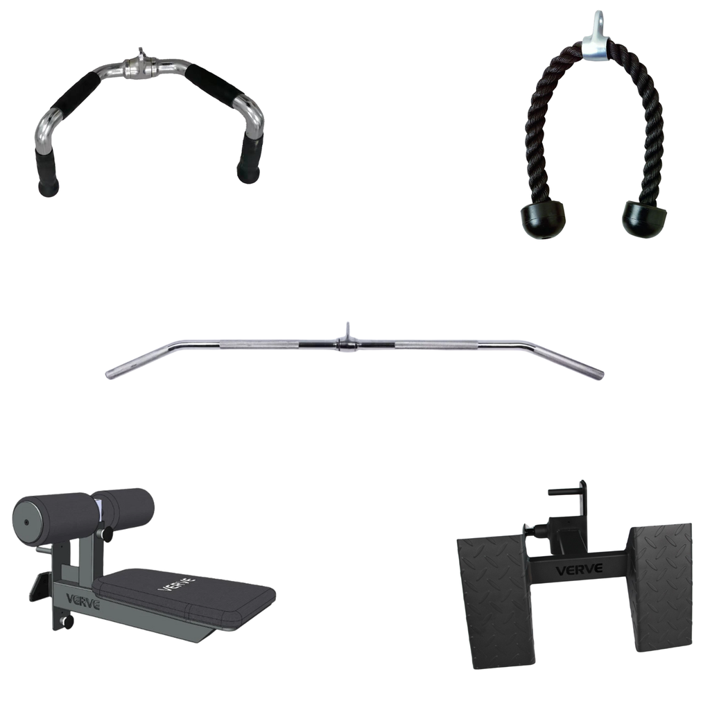This bundle gives you a complete strength setup that covers cables, barbells, dumbbells, kettlebells, and banded work in one clean layout. You can run full upper and lower sessions, heavy compounds, accessories, and conditioning without switching equipment or shifting rooms.