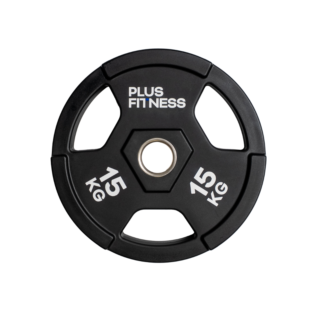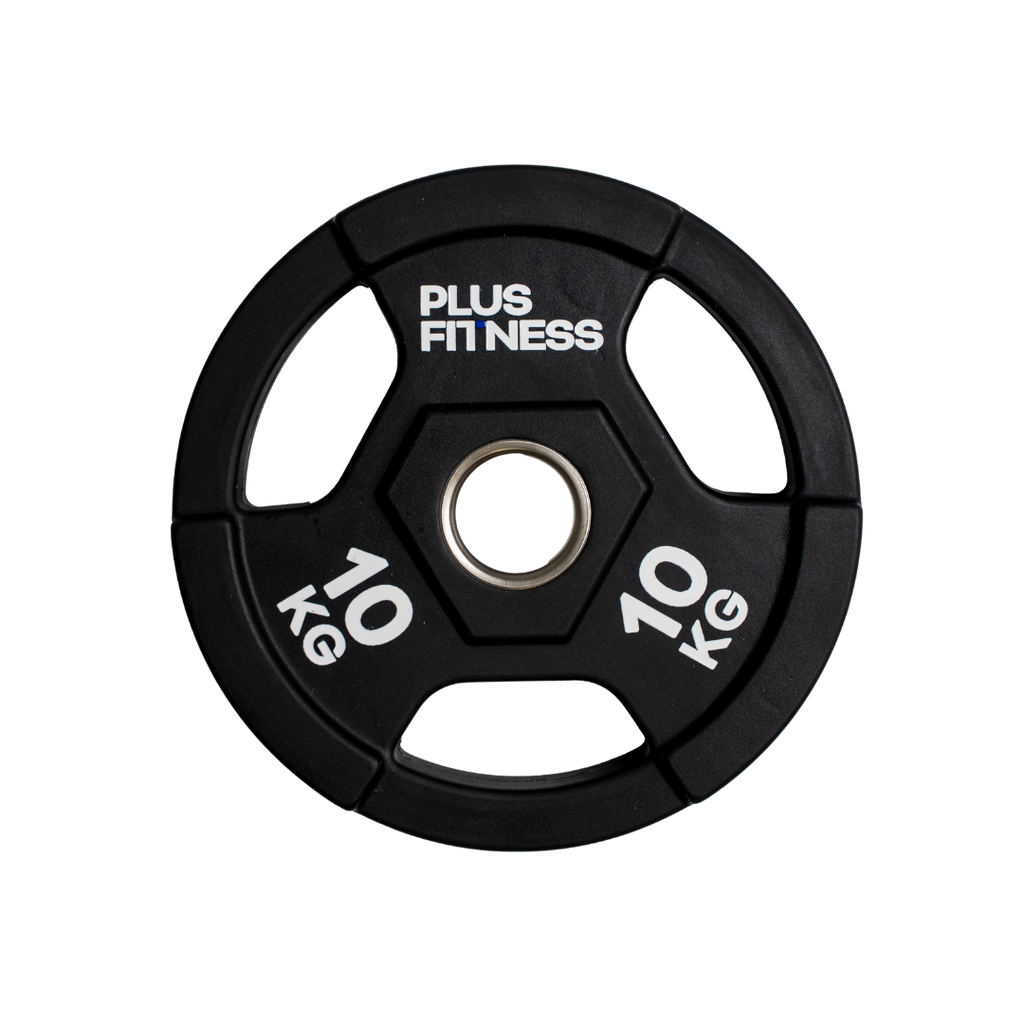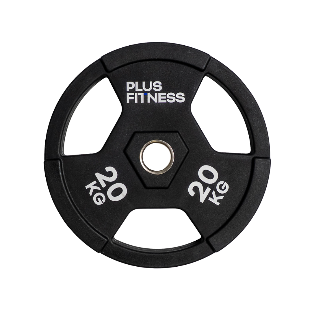 Plus Fitness PU Coated Olympic Weight Plates are one of the most durable weight plates on the market. These plates have a Tri Grip handle feature specifically designed for easy lifting and carrying from weight plate machines to barbells, and everything in between.