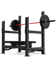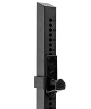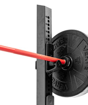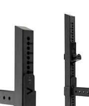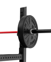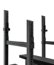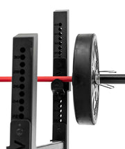 The uprights feature Westside hole spacing which means, instead of the usual 50mm hole spacing, the holes are only 25mm apart. This allows for much more precise positioning of the J-hooks for the perfect lift-off position. The safeties can also be precisely adjusted so that they protect you from a failed lift without getting in the way. Also available with spotter decks for improved safety and usability. West Side