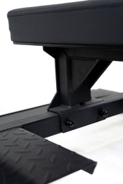 Engineered with premium stainless steel uprights, supported on super heavy duty steel, finished with a matte black powder coat built to withstand the harshest use and abuse. The competition bench itself detaches within seconds with no tools required.