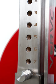 A 25mm hole spacing complete the uprights design, ensuring every lifter can find their own perfect rack height. Team this up with the dual lever and pin system attached to the back of the rack for easy and safe move-ability even with extremely heavy loads on the bar.