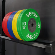 VERVE's Rack Plate Storage Holder features a heavy duty attachment systems that bolts to any upright, rack or rig from the VERVE range. This racking system is specifically designed to store large amounts of Olympic Sized Bumper Plates in a neat vertical formation for space saving an easy reach.